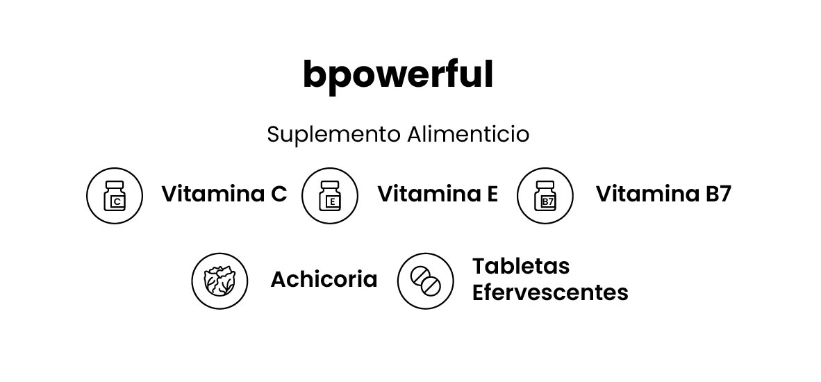 Impulsa tu rendimiento con bpowerful. Esta tableta efervescente energizante está formulada con una mezcla única de vitaminas C, B y minerales esenciales, diseñada para aumentar tu energía y resistencia. Perfecta para antes de un entrenamiento intenso o para superar esos momentos de cansancio, bpowerful te ayuda a alcanzar tus metas con confianza y determinación.